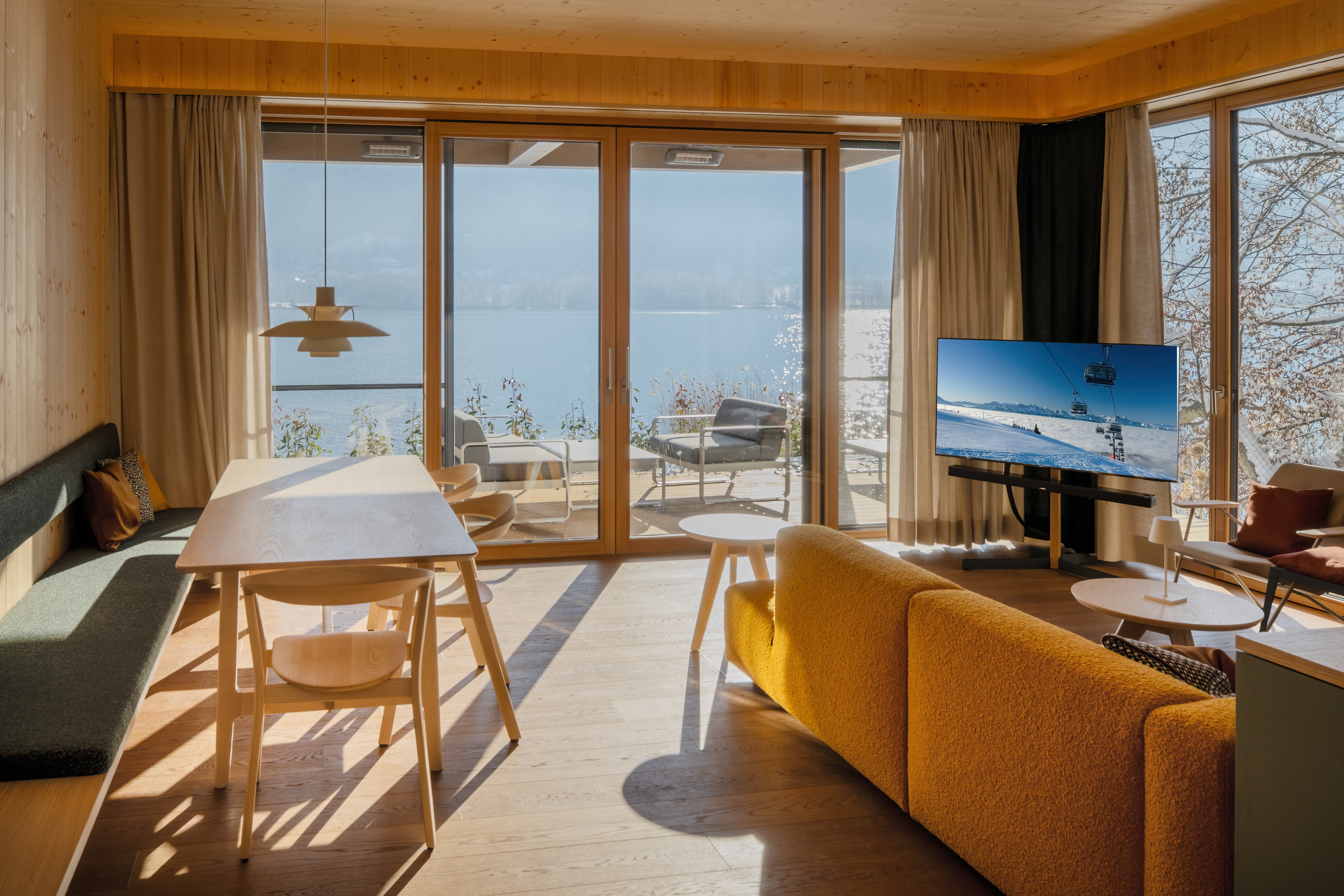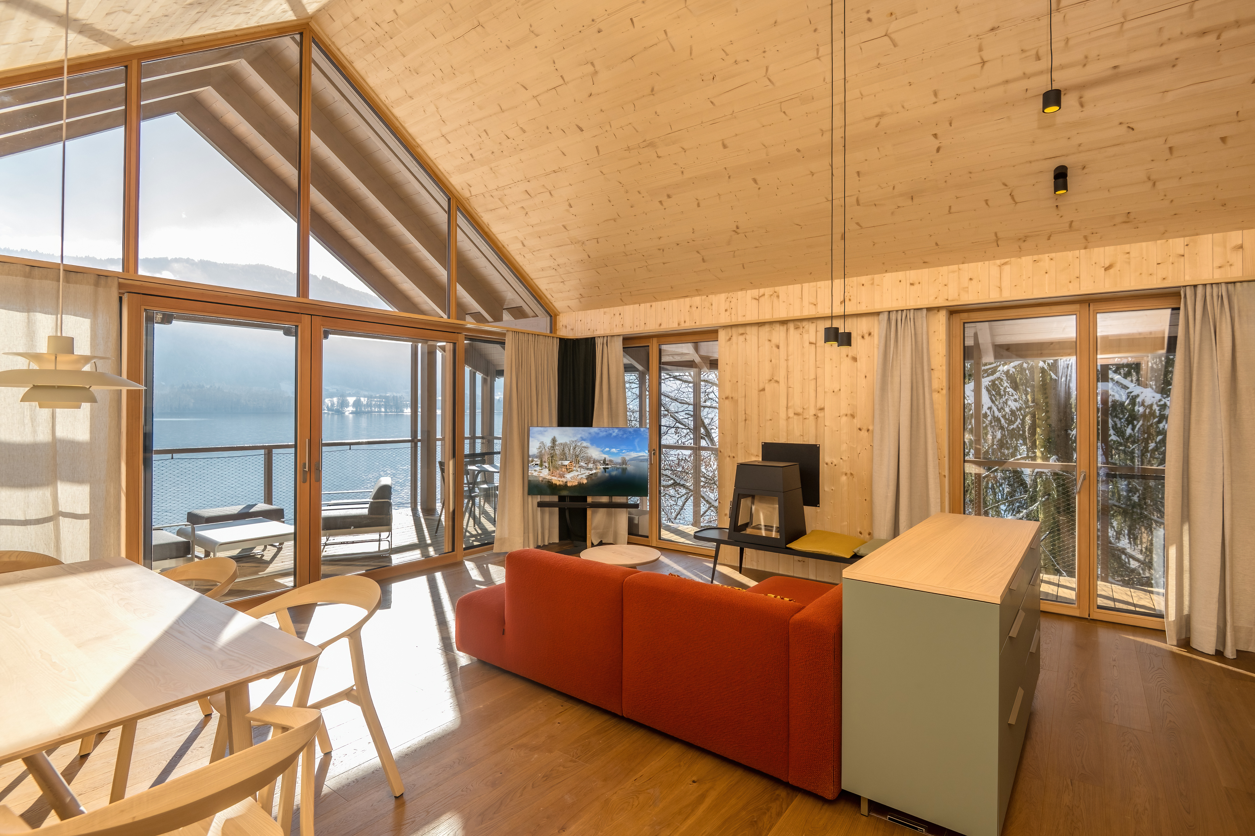Jeder Wohnraum eröffnet atemberaubende Blicke auf den Ossiacher See und das historische Stift Ossiach – wohltuend, lebendig, tief verbunden mit der Natur.